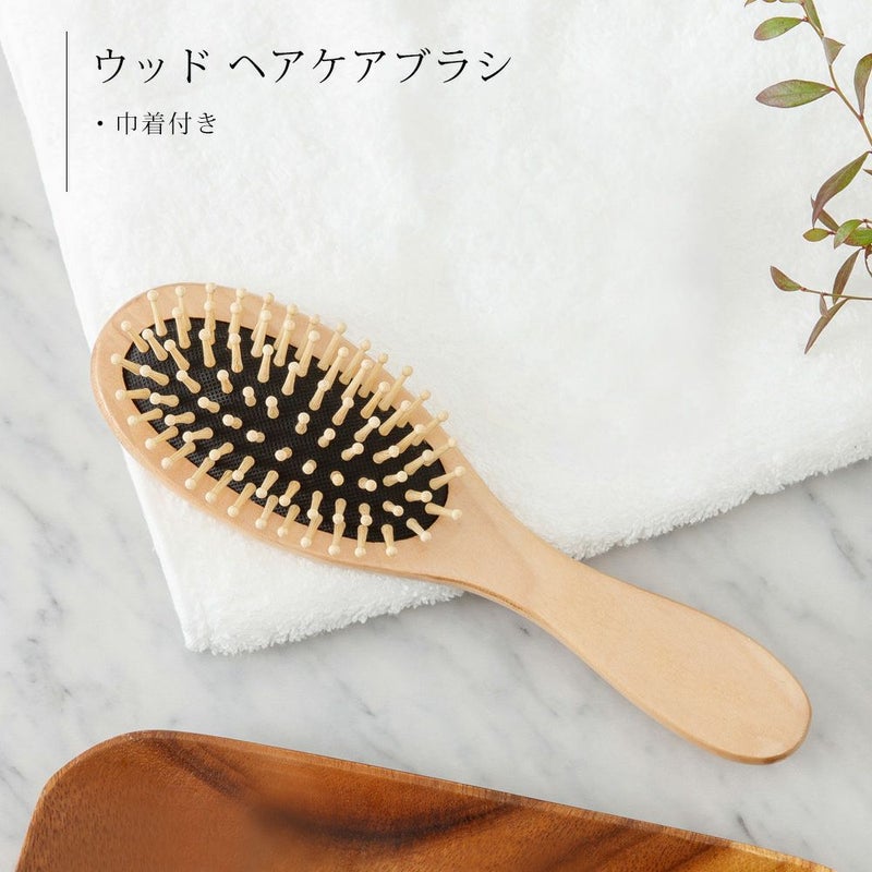 木の手触りが心地いいです。ブラシの大きさも丁度良く使いやすいです。トントントンと頭皮マッサージするのにも良い感じ。持ち運び用にでしょうか!?セットできんちゃくをつけてくれているのが嬉しいです。